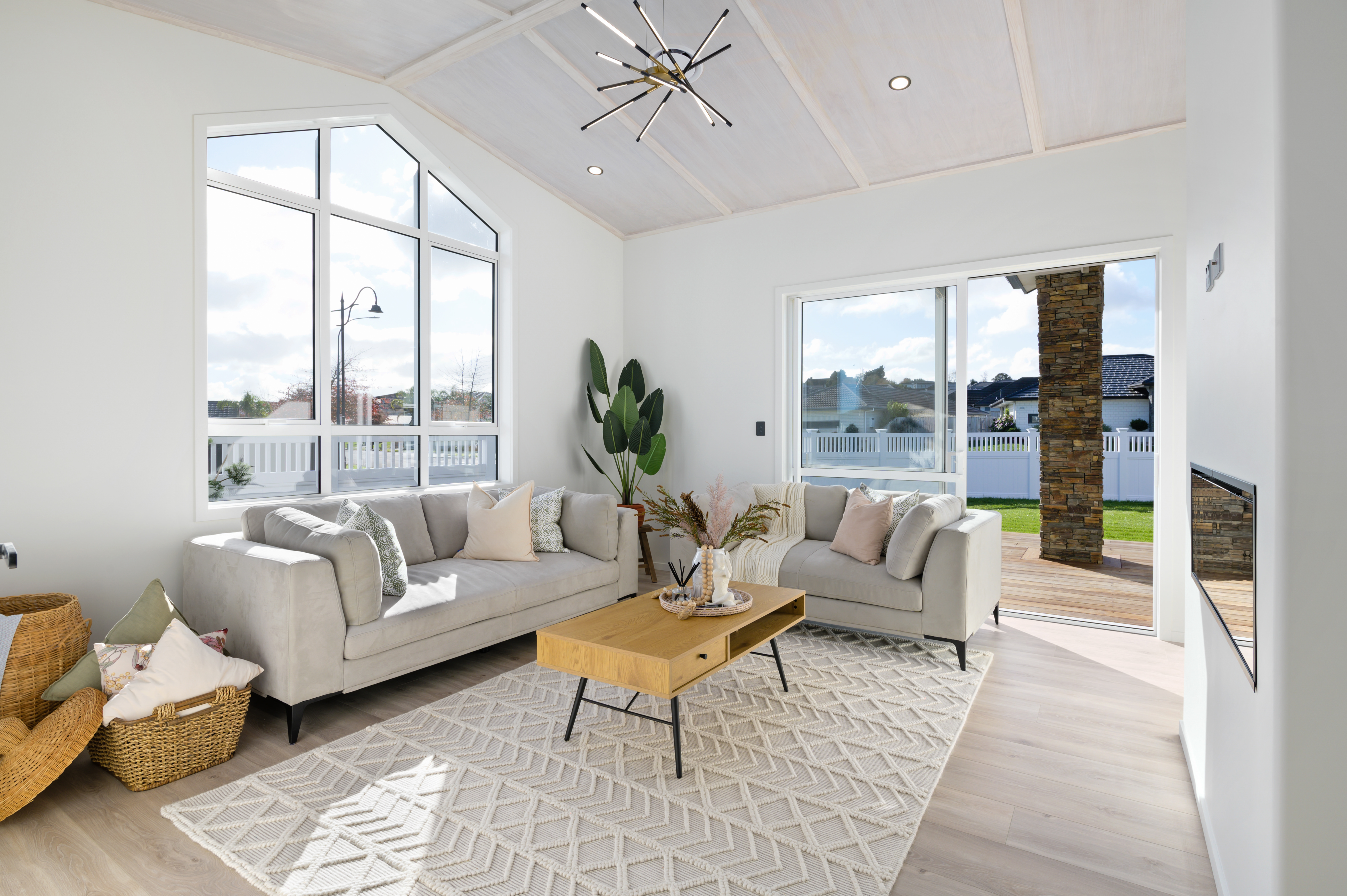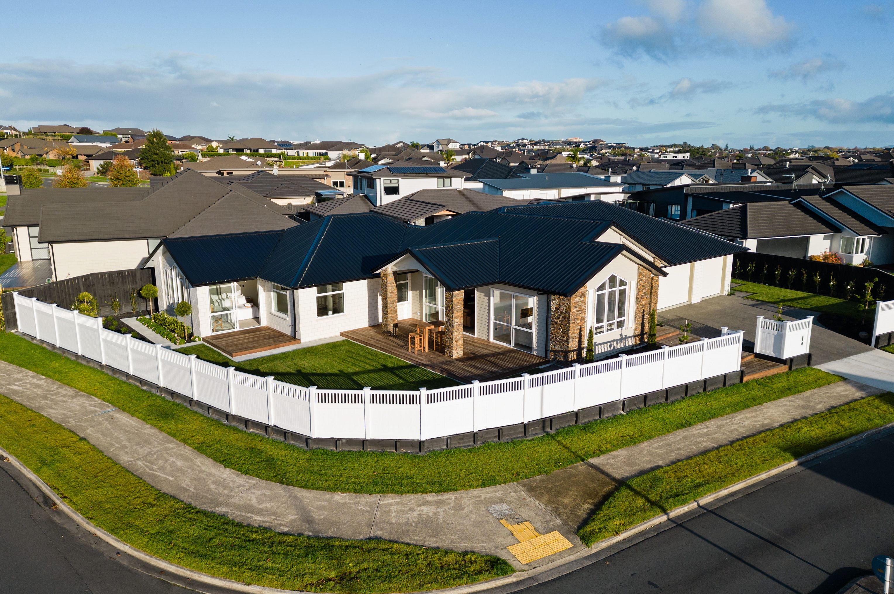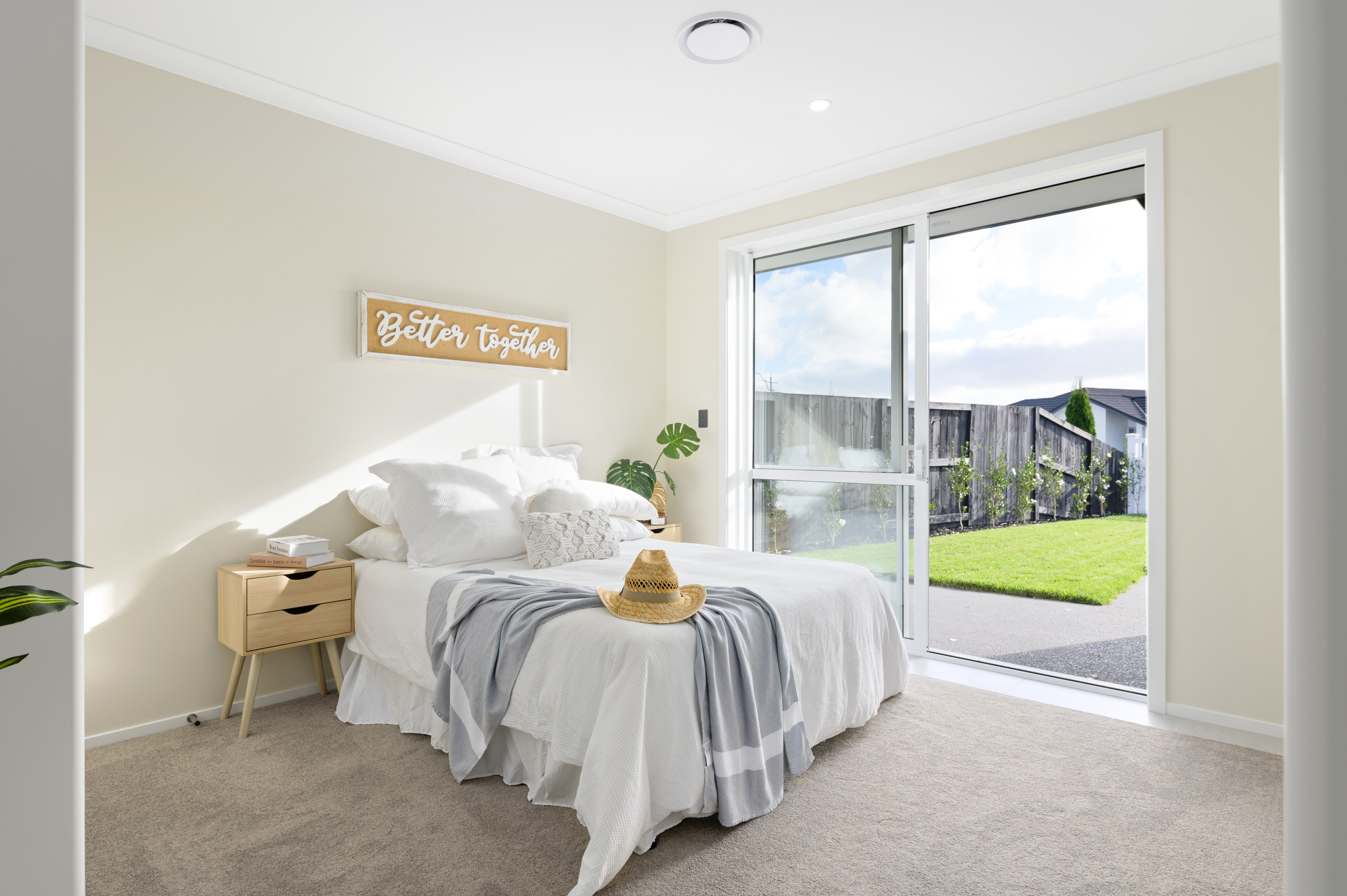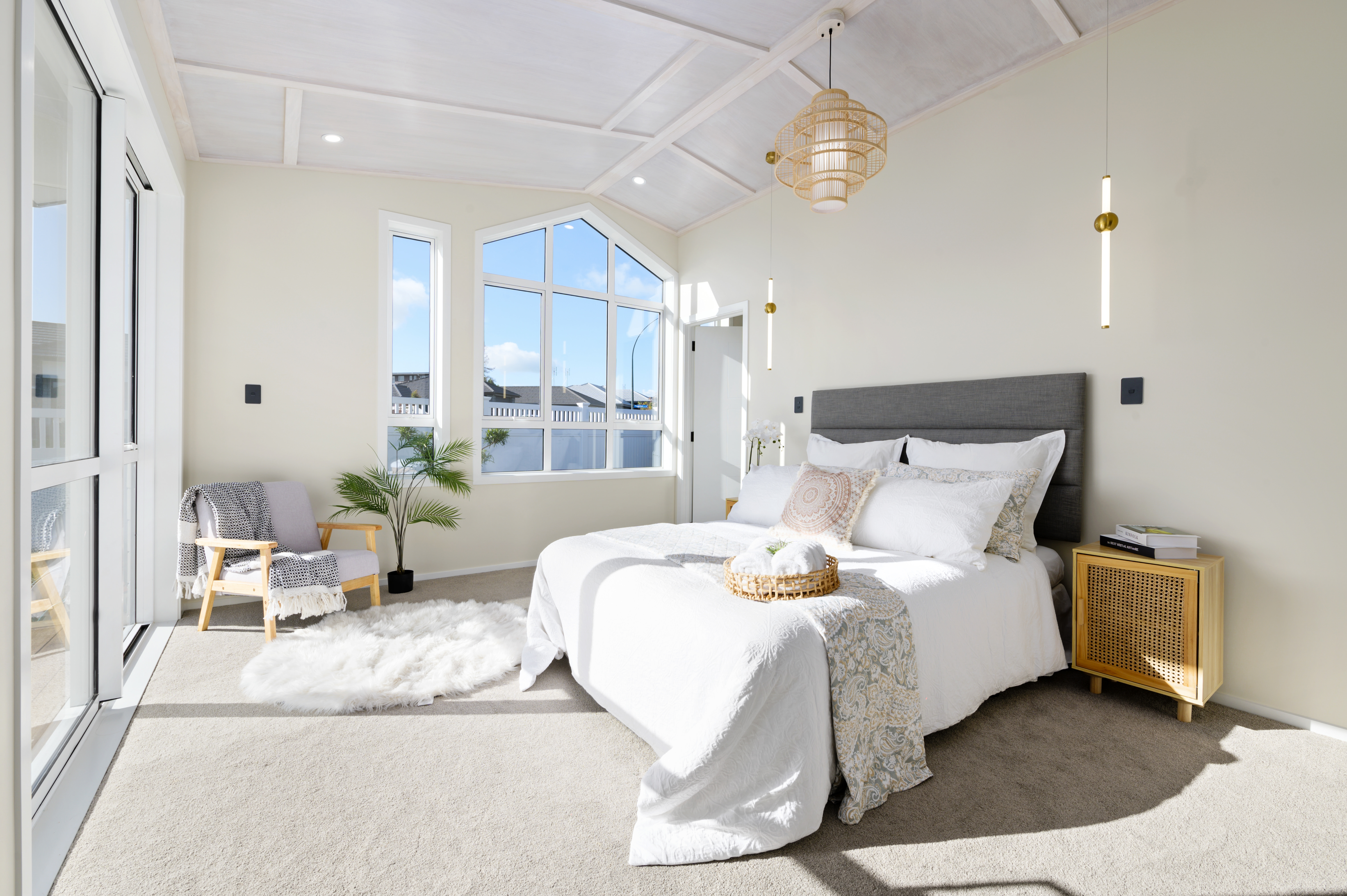 Enticingly inviting, the high-stud master bedroom boasts a tiled ensuite, a fully fitted walk-in robe, and large sliders that open to a deck.