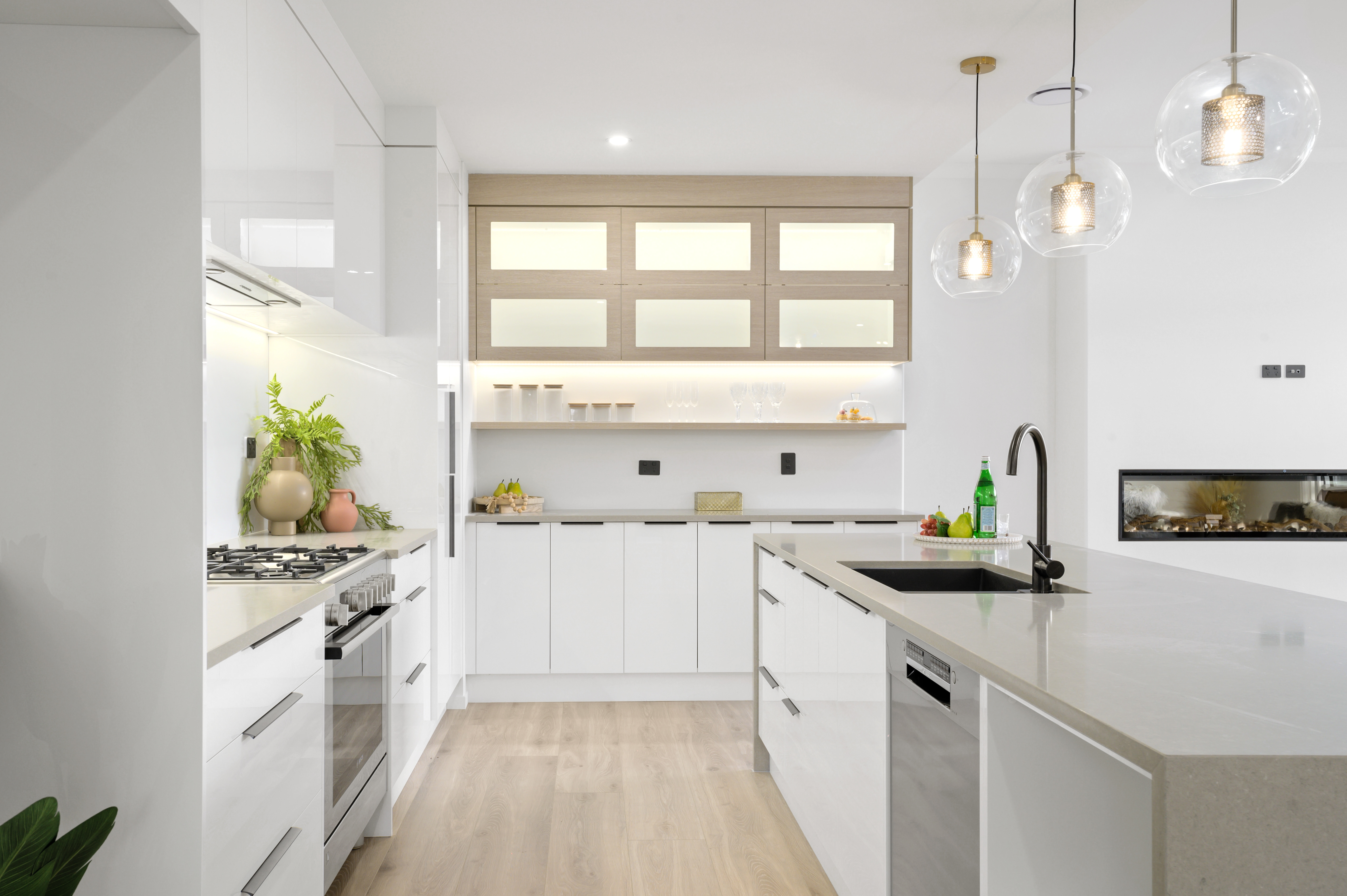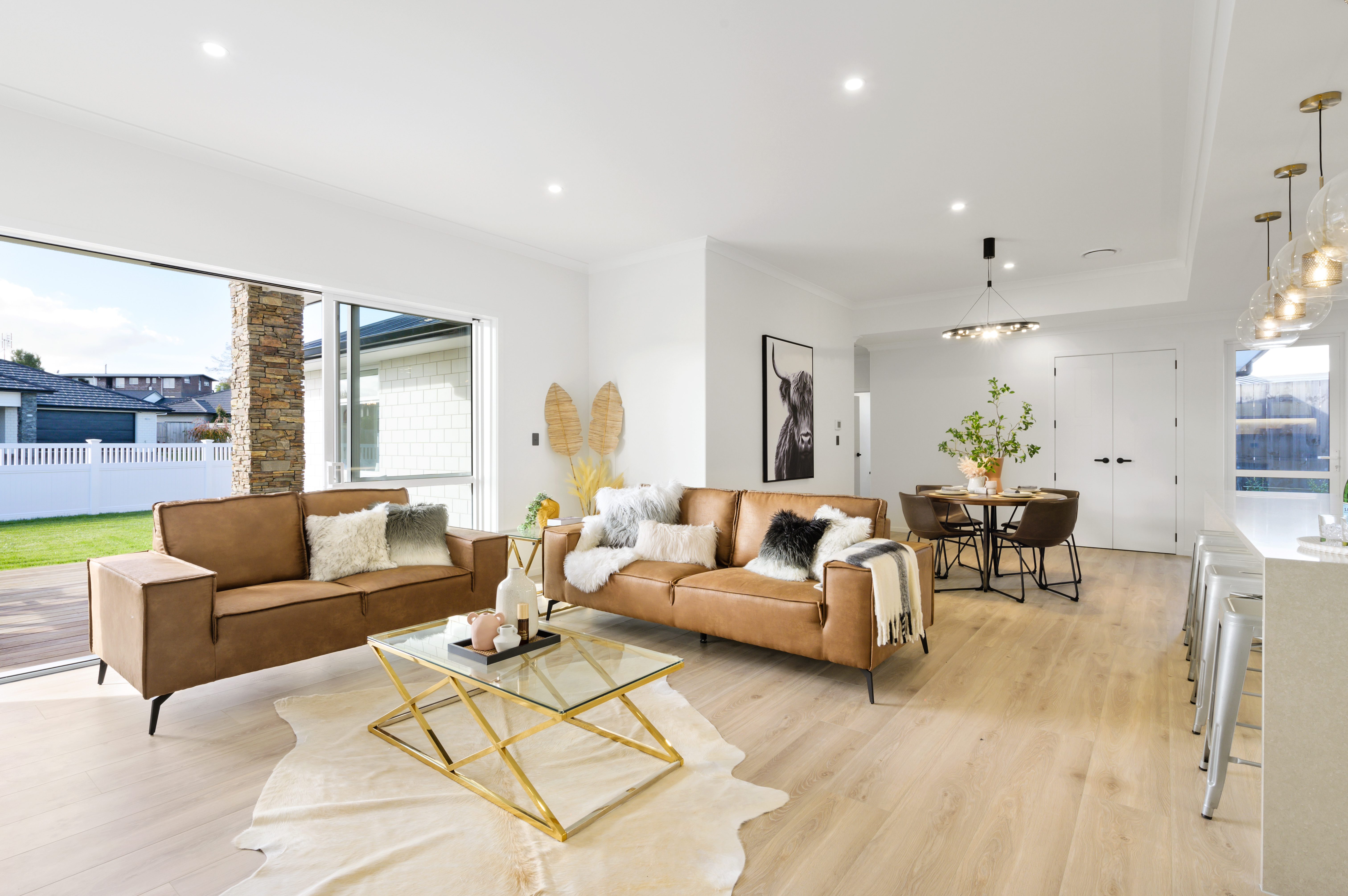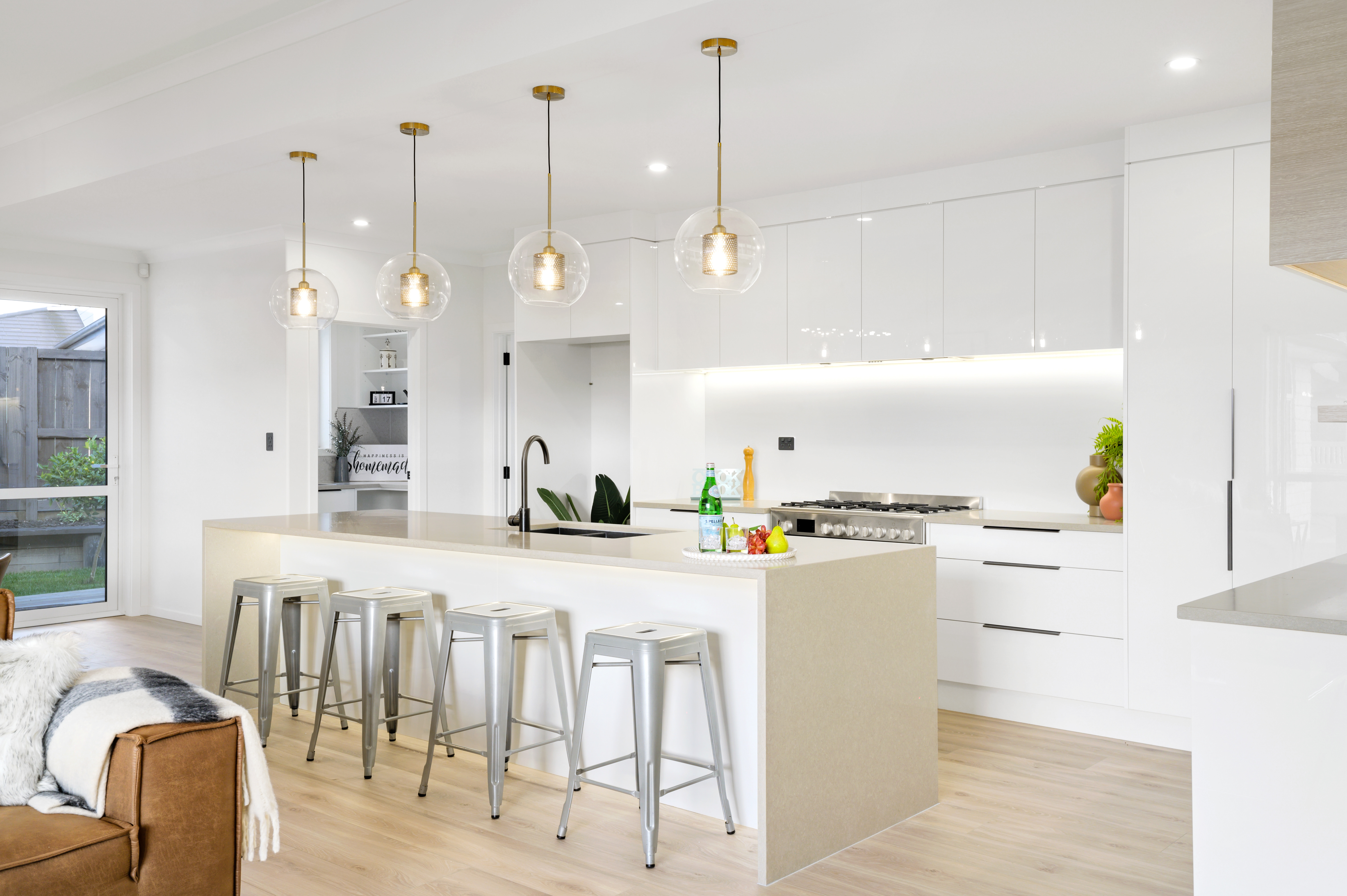The open plan hub is family central, anchored by an efficient, modern kitchen with a well-appointed scullery, a large island, a 900mm with a gas hob, and loads of storage.