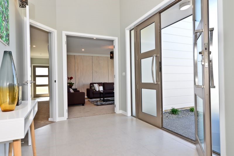 A sun-soaked formal lounge, guest bedroom, tiled bathroom and double garage feature in the main family wing.