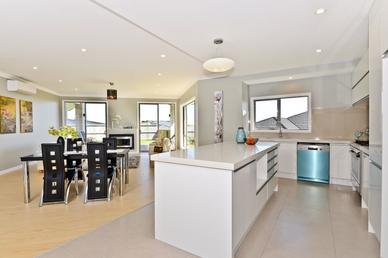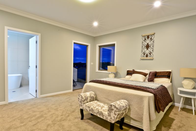 Three double bedrooms nestle upstairs, including a de luxe master that opens to a balcony capturing elevated district views to the Raglan hills and Hakiramata ranges. Ensuite and walk-in robe are impressive spaces.